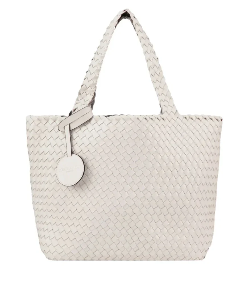 Il est fabriqué en similicuir souple et tressé, avec de larges sangles de transport sur le dessus pour plus de confort et une plaque stable sur le dessous, pour que le sac garde toujours sa forme. En outre, il est doté d'une étiquette spéciale avec logo et d'un mousqueton caché. Alors, si vous faites partie de ces personnes qui doivent toujours chercher leurs clés au fond de leur sac ? Attachez simplement vos clés ou votre portefeuille au mousqueton - et vous saurez toujours où les trouver !